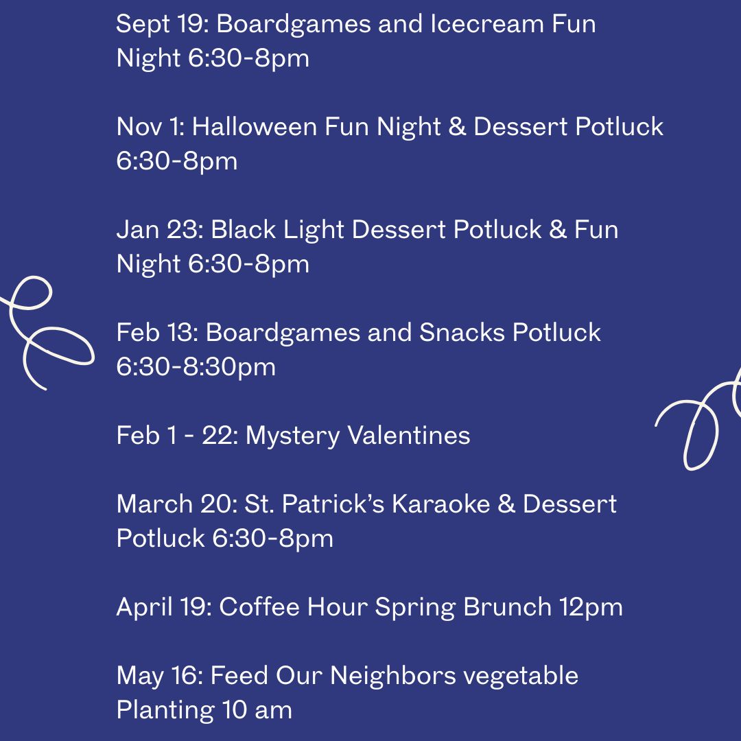 November 1, 6:30-8 p.m. – Halloween Fun Night and Dessert/Snacks Potluck